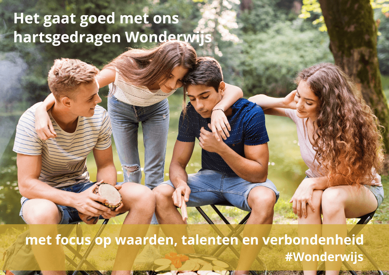 De prioriteit is: welzijn en vertrouwen, persoonlijke ontwikkeling, coöperatie en daarna kennis. Niet — en als je het mij vraagt: nooit meer — andersom. Want wat zijn we met hoofden gevuld met kennis, als het zelfvertrouwen, de eigenwaarde en de veerkracht achteruit gegaan zijn? Wat zijn we met kennis als de verbondenheid en het vertrouwen in elkaar een deuk gekregen heeft? En dat is wat er vaak gebeurt met jongeren, het verliezen van het essentieelste in een mensenleven. Het aantal jongeren dat uitvalt neemt toe, de hoeveelheid stress en andere ongewenste neveneffecten ook. Het moét en zal anders. Omdat het de enige wijze keuze is. Een keuze vanuit liefde. Een keuze die het geschenk dat elke jongere is, eert.